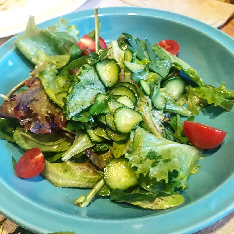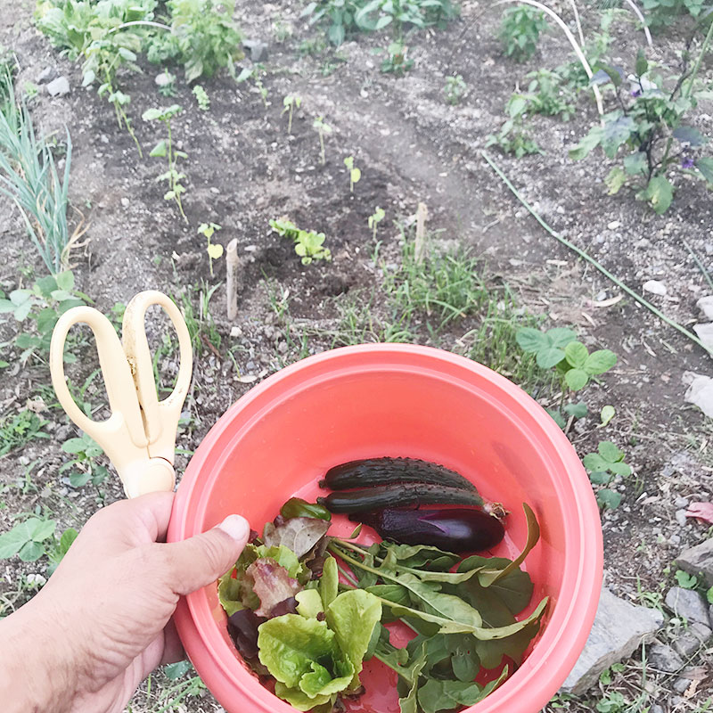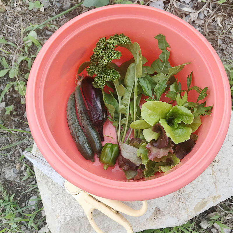 畑の野菜でサラダ。