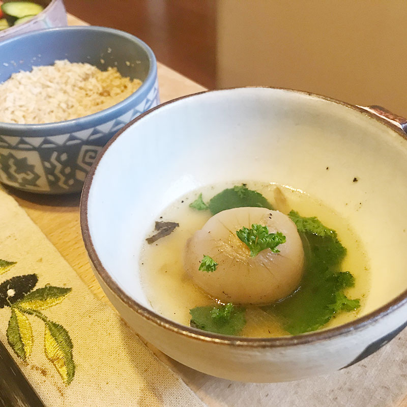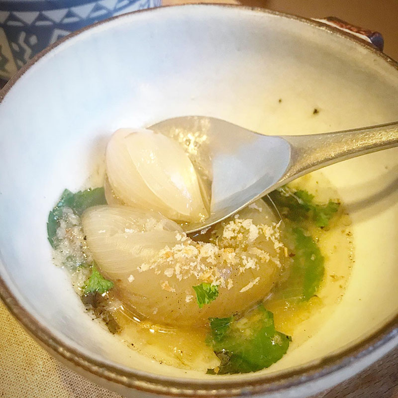 小さな新玉ねぎの丸ごとスープにも、