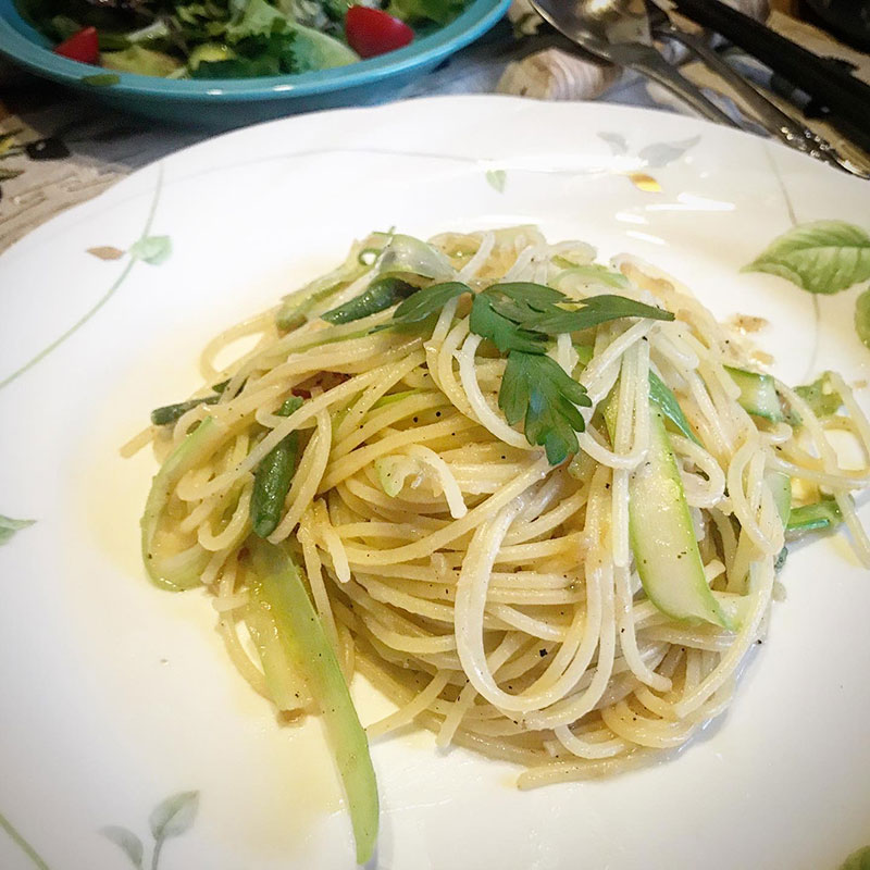 アスパラガスのパスタ作った。