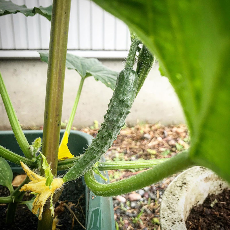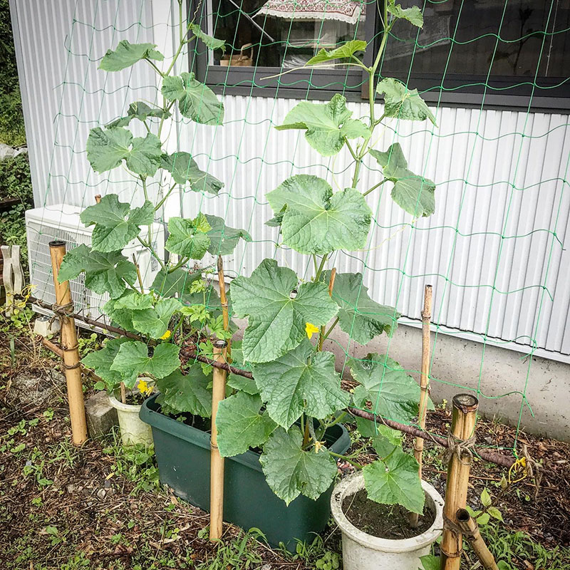 肥料が良いタイミングで効いたのかプランターのきゅうりが今や畑に地植えしたものを追い越す勢い。