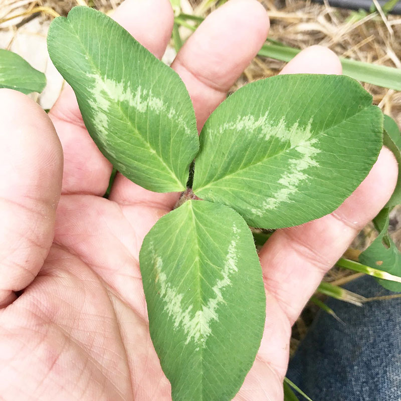仕事場の五つ葉のクローバーがたくさん生えてる一角。