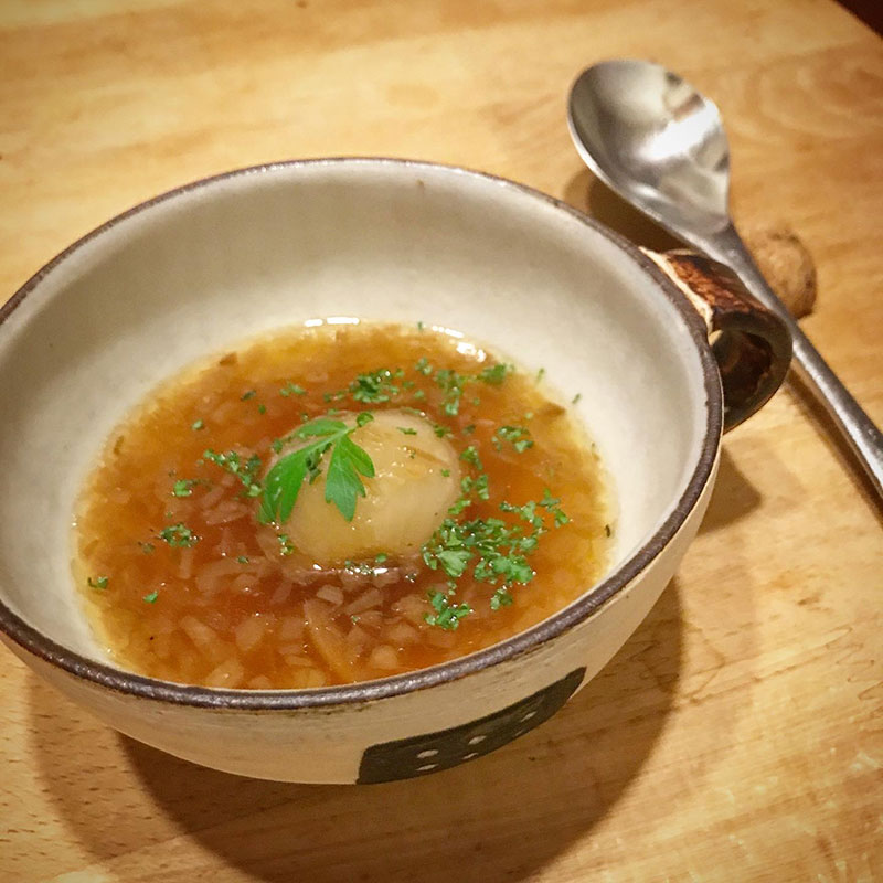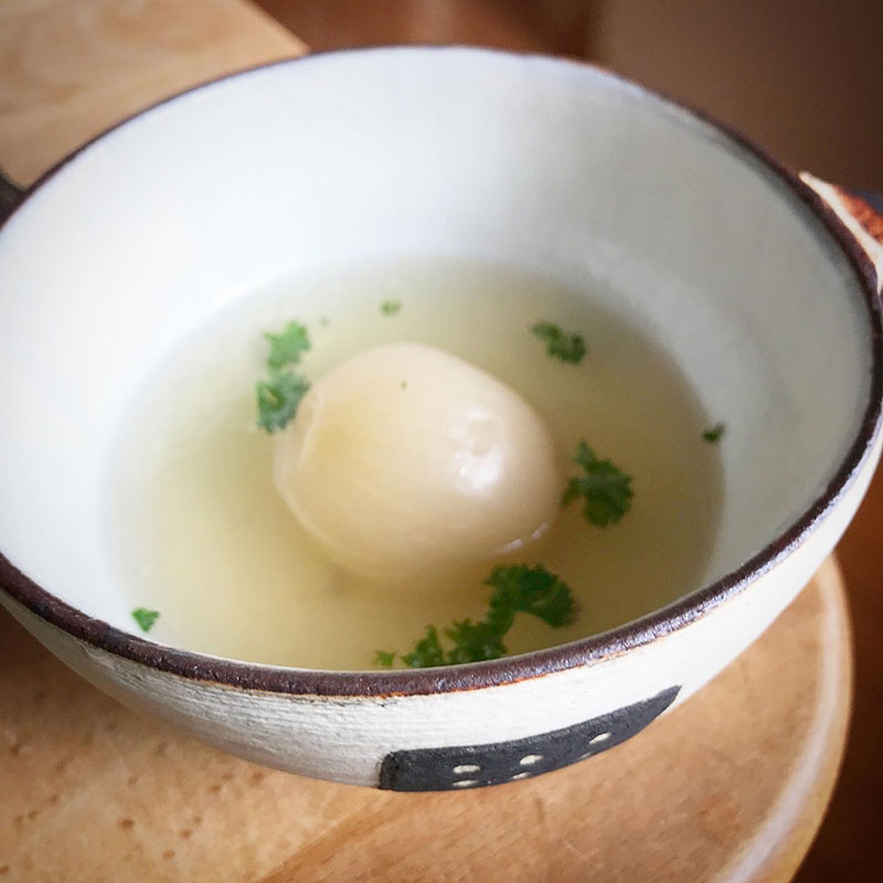 小さな新玉ねぎの丸ごとスープと一緒に。