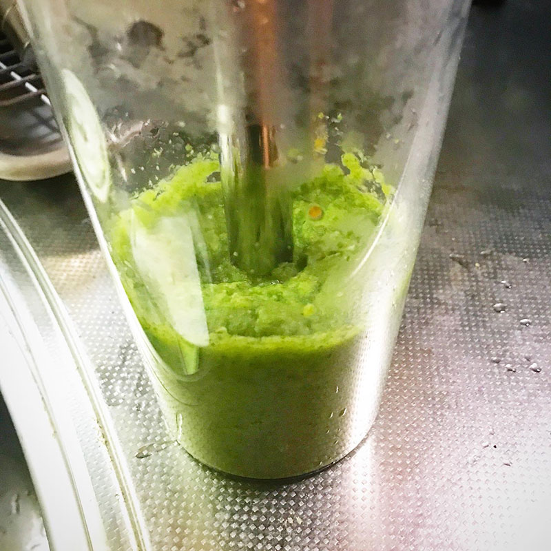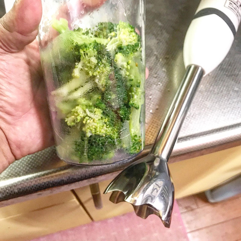 茹で汁足して熱いうちにプレンダーにかけるだけでブロッコリーのソースは出来上がり。じゃがいもがビシソワーズに化けるように元がブロッコリーとは思えないソースになる。クリーミーでとても深い味わい。プレンダー親父にもらったおかげでずいぶんレパートリー増えた。ミキサーより洗うのも簡単だし手軽に使えて格段に料理がレベルアップして本当に便利。