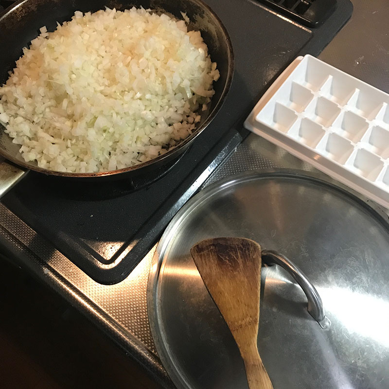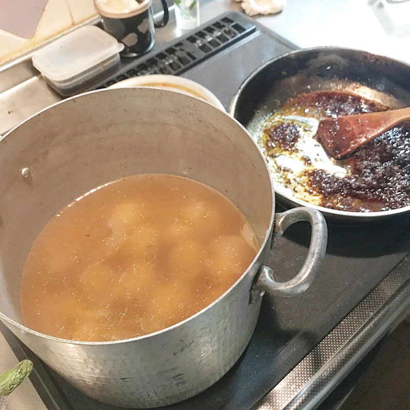 フライパンに残った玉ねぎを飴色になるまで炒めた。