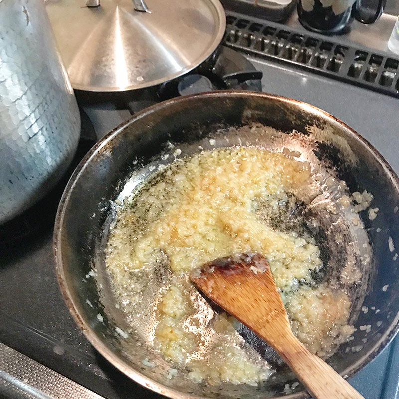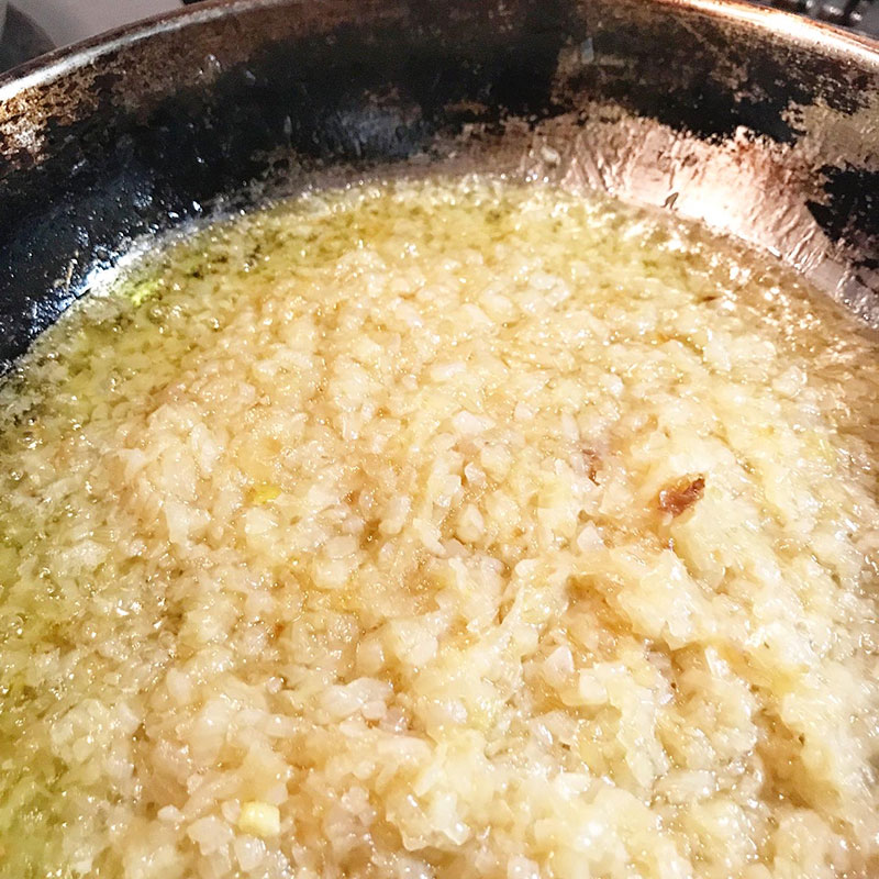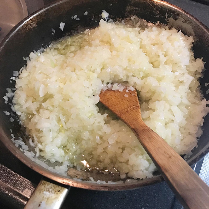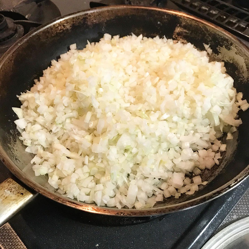 ひたすら細かなみじん切りにしてフライパンに入れたら