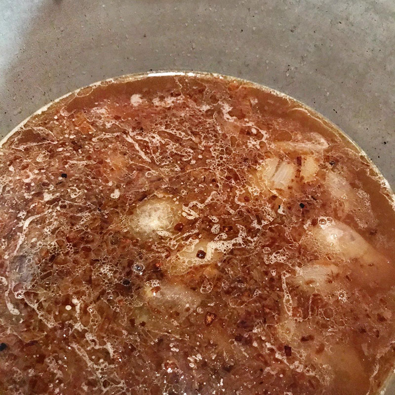 飴色に炒めた玉ねぎ入れて味変。味を変える。
