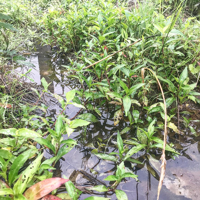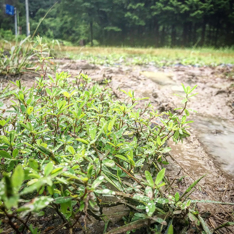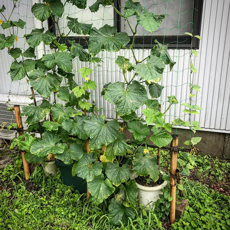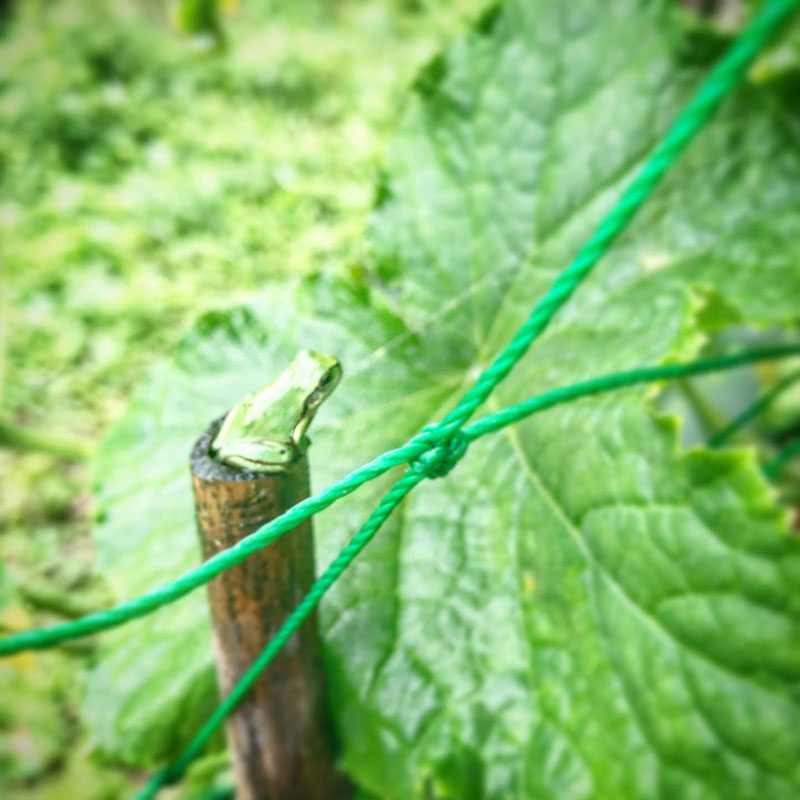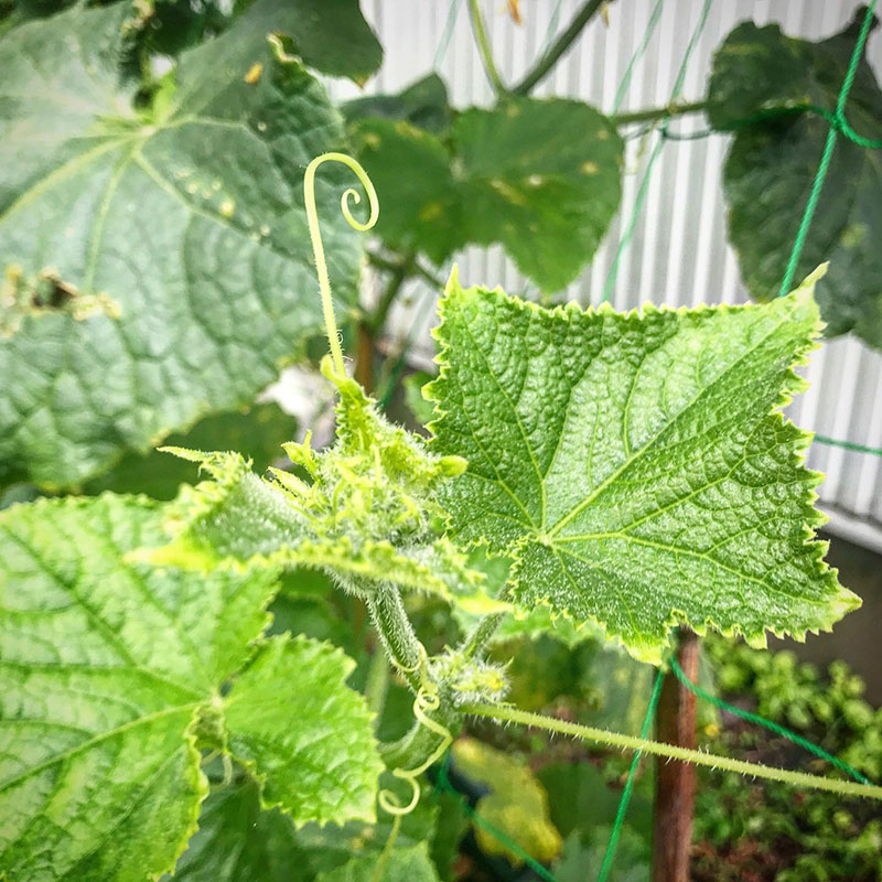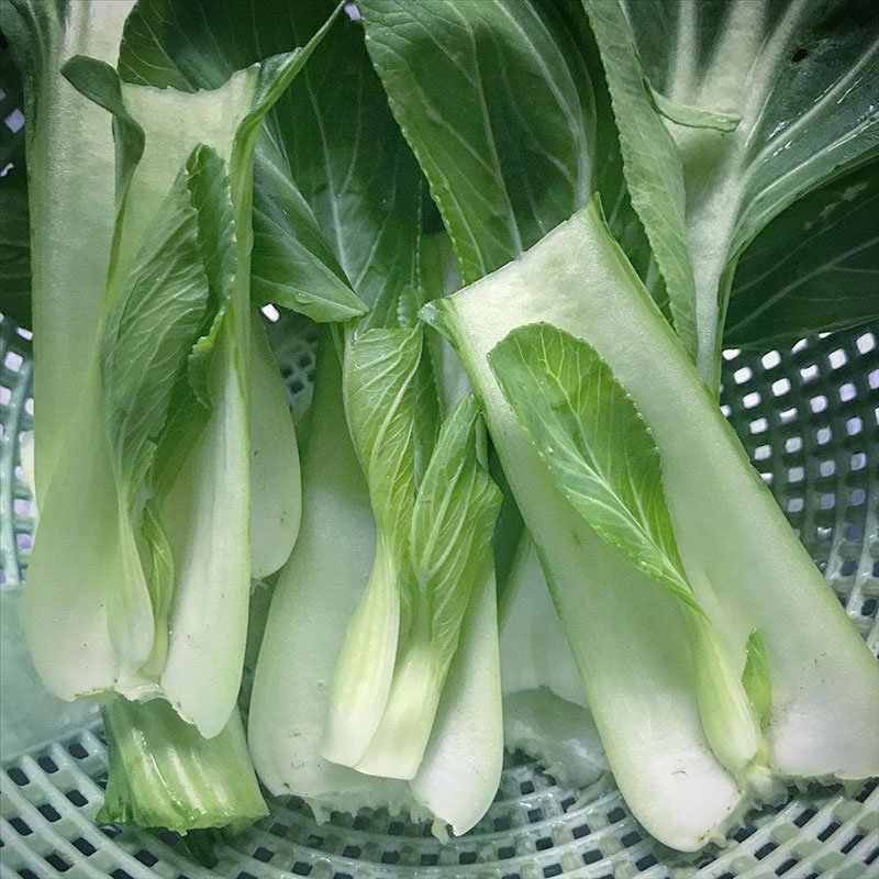 畑から青梗菜と紫蘇の葉収穫して朝の仕込み。大きな葉をめくると根本に小さな葉を抱えているのがかわいい。