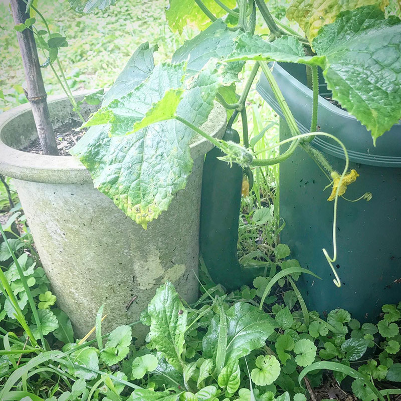 そして見逃したー!プランターと鉢の間の見にくいところに育ってたー!ヘチマどころじゃ無い大きさ。