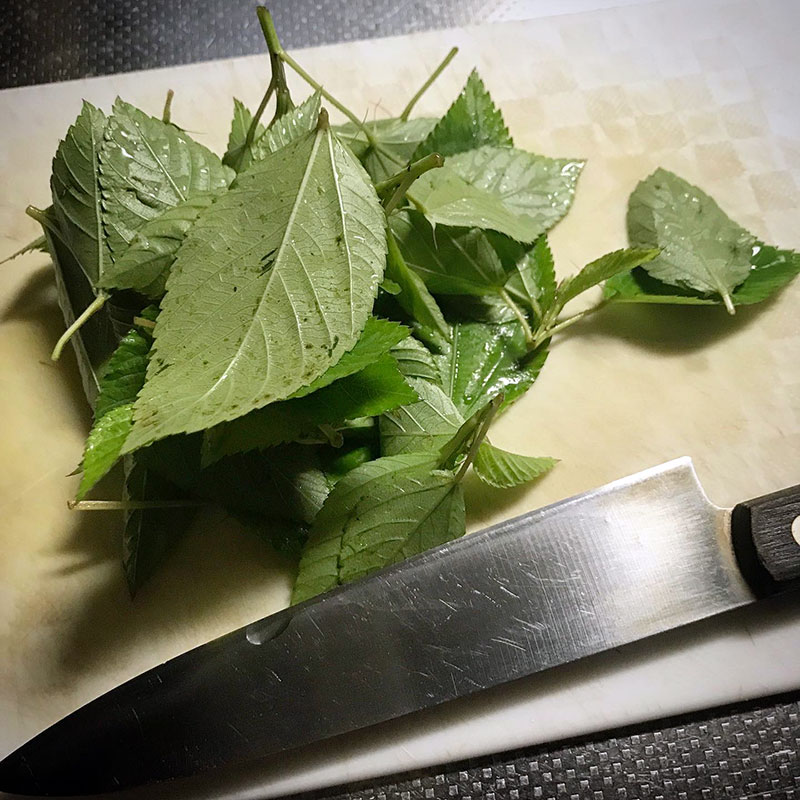 紫蘇の葉はにんにく醤油漬けに。雨ばかりで太陽が出ないので葉物は良くない。