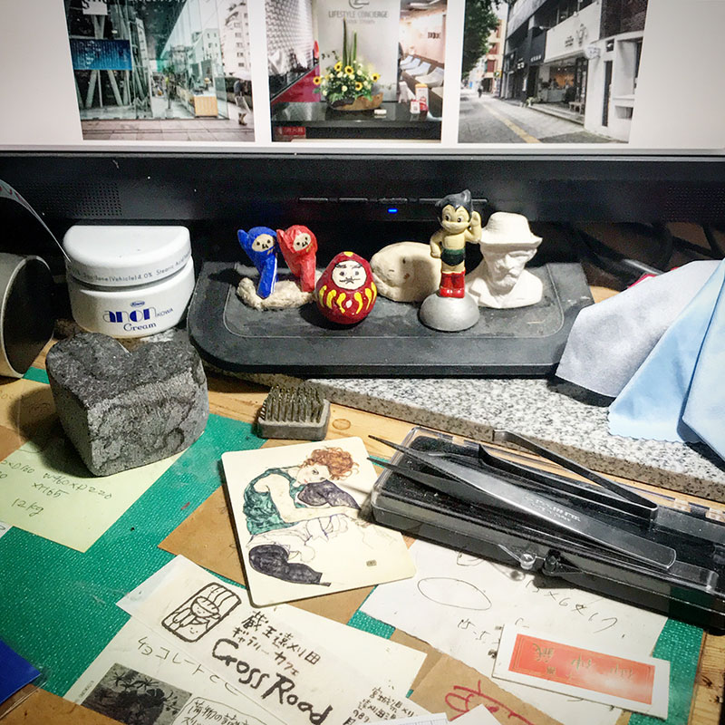 セカンドモニターの下のお気に入りの小さなモノたち。