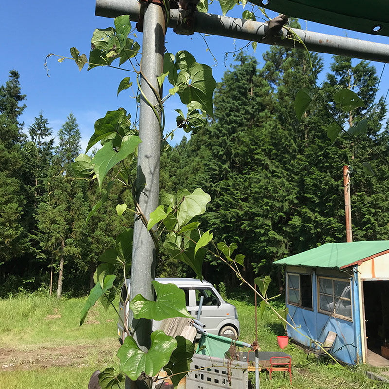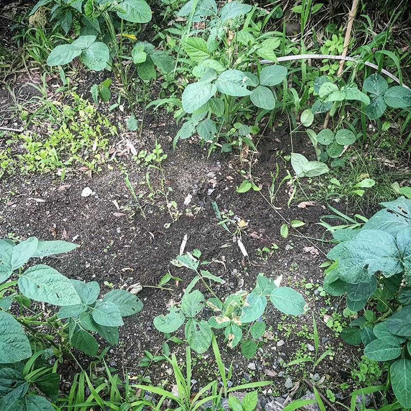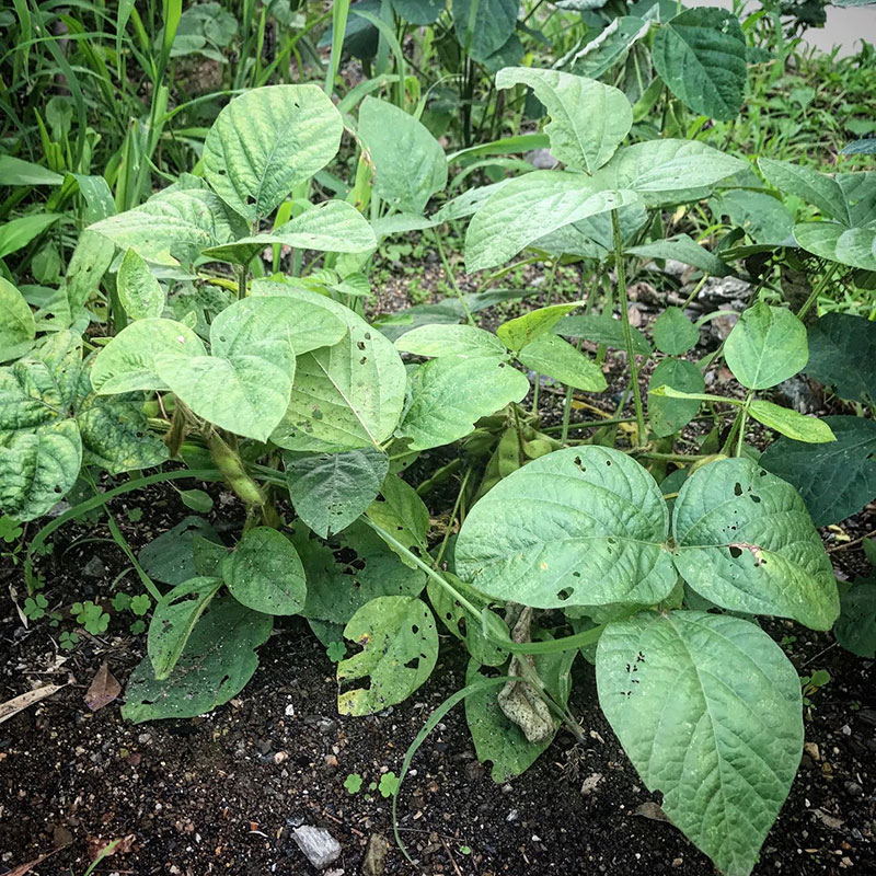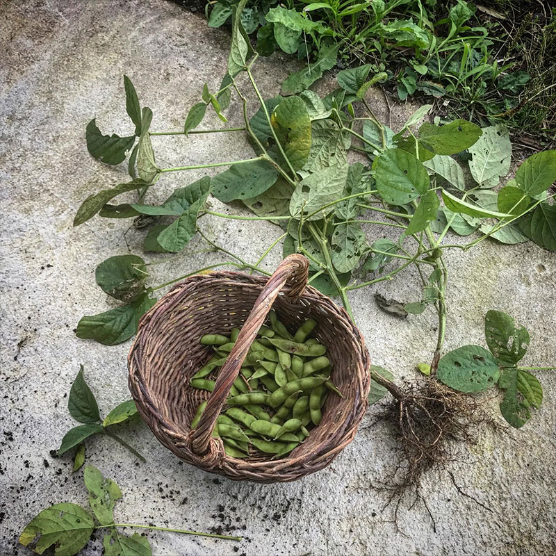 今宵の食卓のため畑を物色。有機農法のみどりさんにいただいた早生の枝豆、太豊緑。