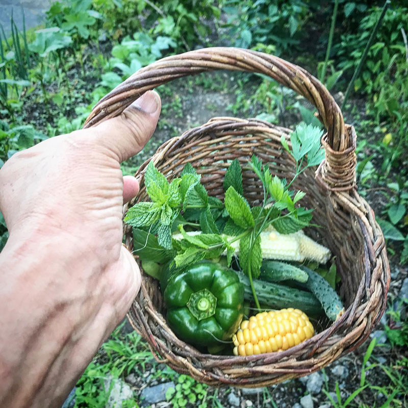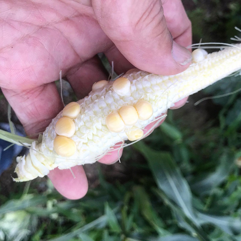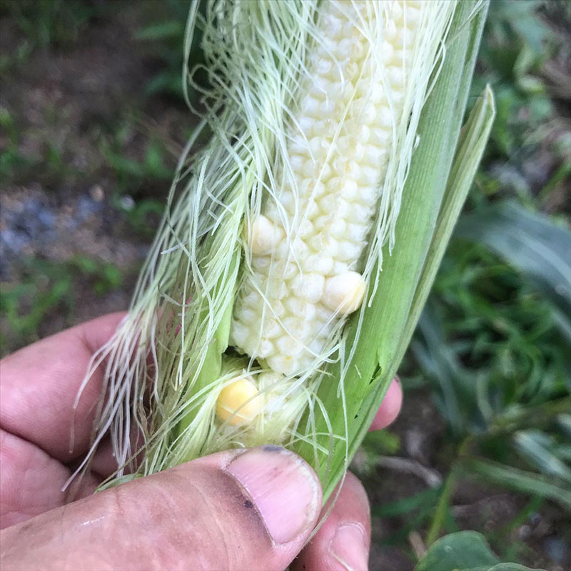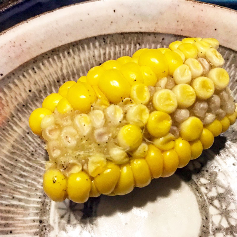 畑のとうもろこし。若いのはそのまま焼いて。かろうじて半分実がついていたのは茹でて。そしてそれが驚くほどの甘さ。