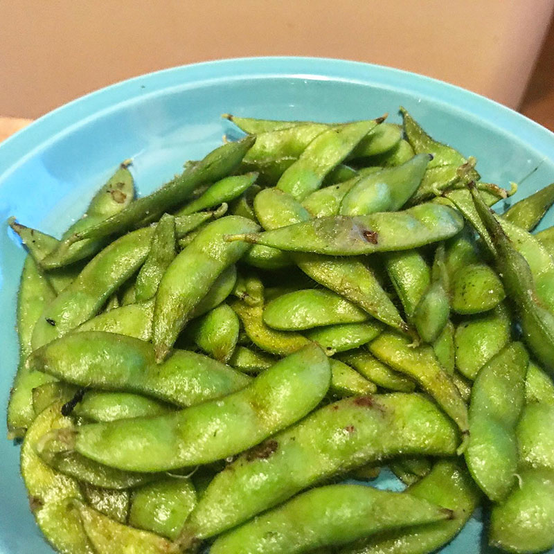 畑の枝豆採ってすぐ茹でてうちわで急冷。(←これ大事)