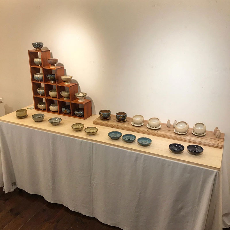 友人の陶芸家、田尻大沢窯の松山さんの個展に。