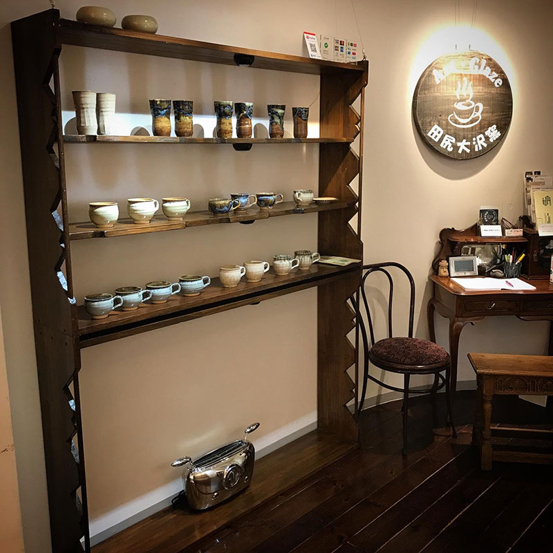 コーヒーカップ展。苔玉を置く器も。