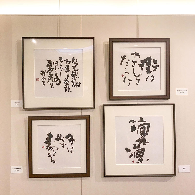 大橋アキラさんの書。今回初めて見せていただきましたがとても良かった。イラストレーターの佐藤勝則さんの作品も展示されています。
