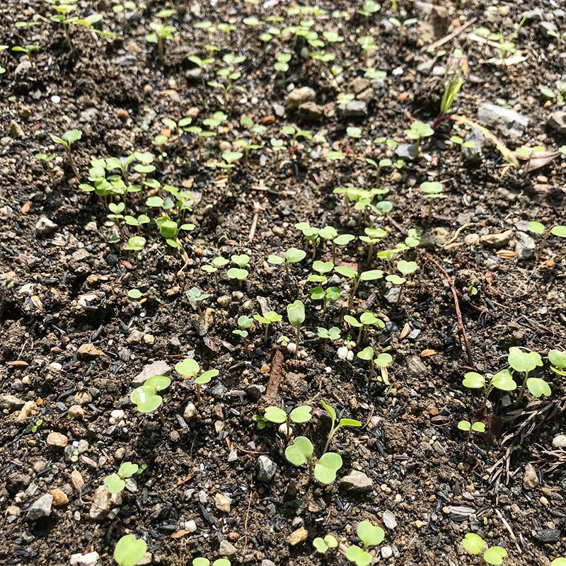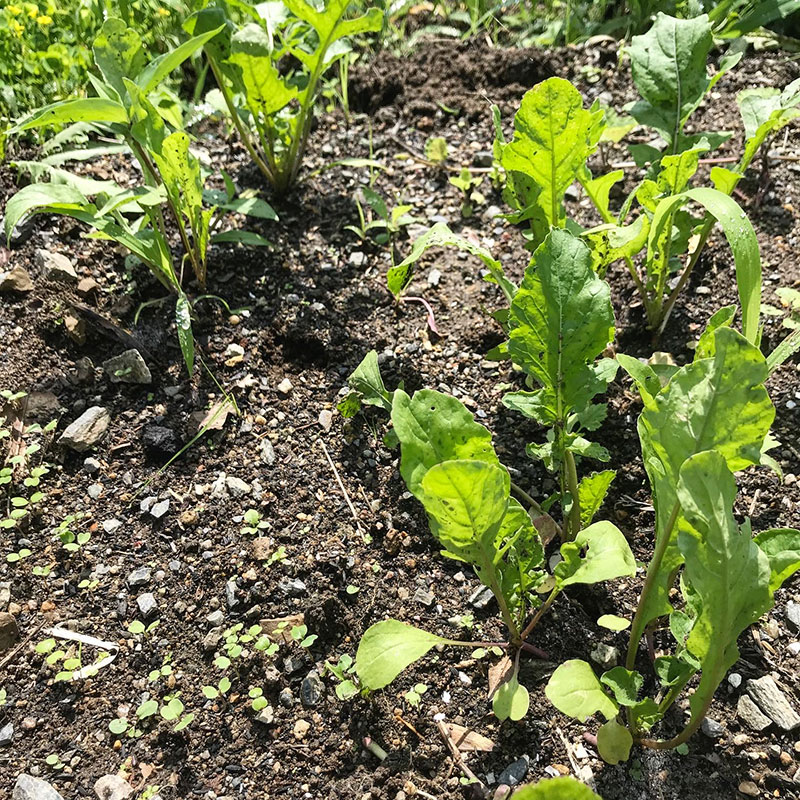 ルッコラの横に植えてあった大根と青梗菜を食べて出来たスペースにまいたルッコラ。