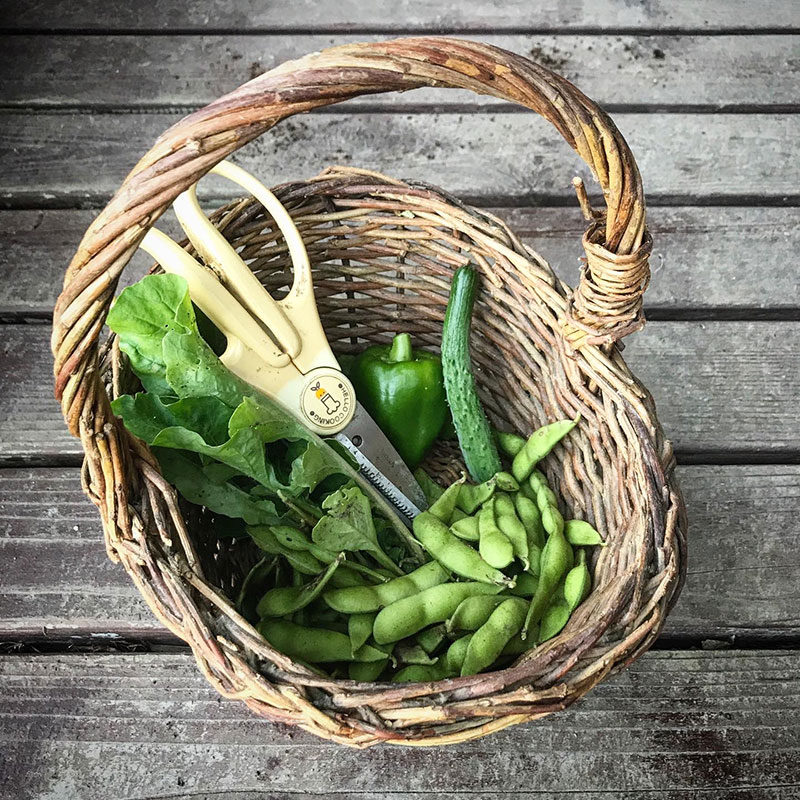 畑が食べられるものでいっぱいで幸せ。朝夕に見とれてる。