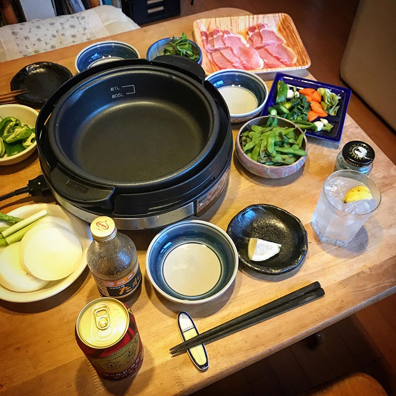 居酒屋我家、開店。ホットプレートで豚肉や野菜を焼きながら飲む!