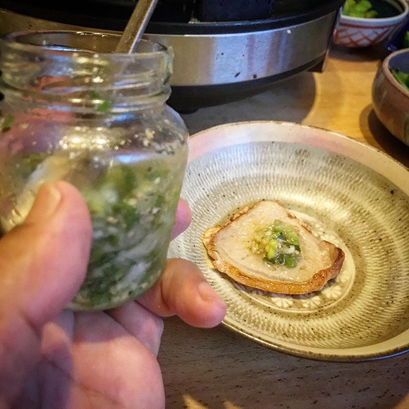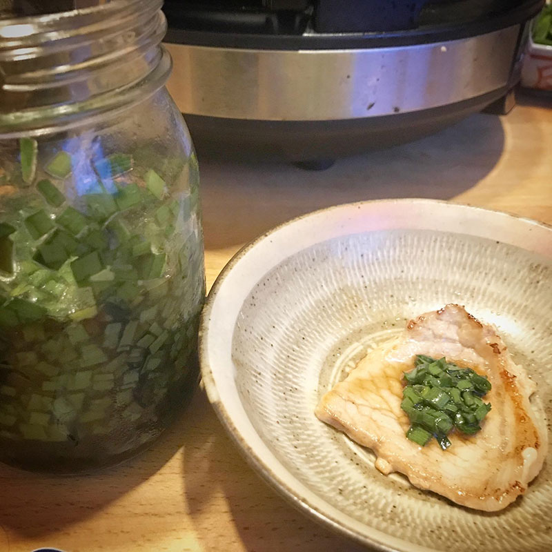 豚肉は自分で仕込んだネギ塩だれと