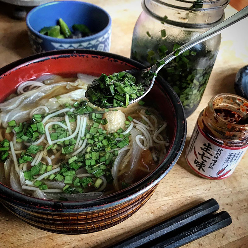 ニラ醤油入れたら美味しさアップ!