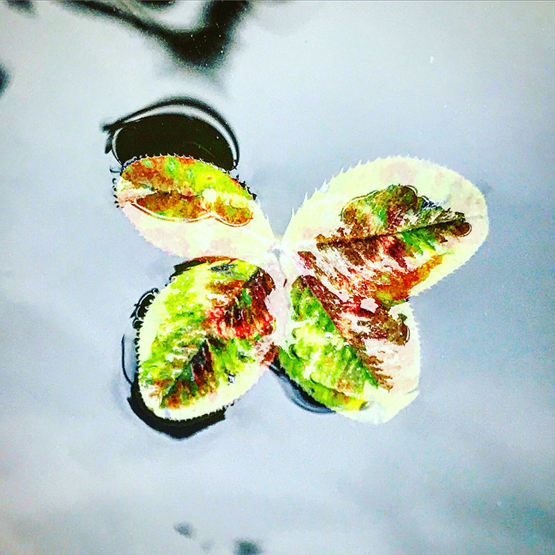 三つ葉、四つ葉、五つ葉を水に浮かべてる。数週間すると緑が抜けて紅葉したみたいになる。これ作品に使えないかな、と思ってるところ。