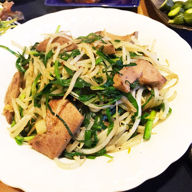 昼にきれいに掃除しておいた畑のニラでカミさんがニラレバ炒め作ってくれた。