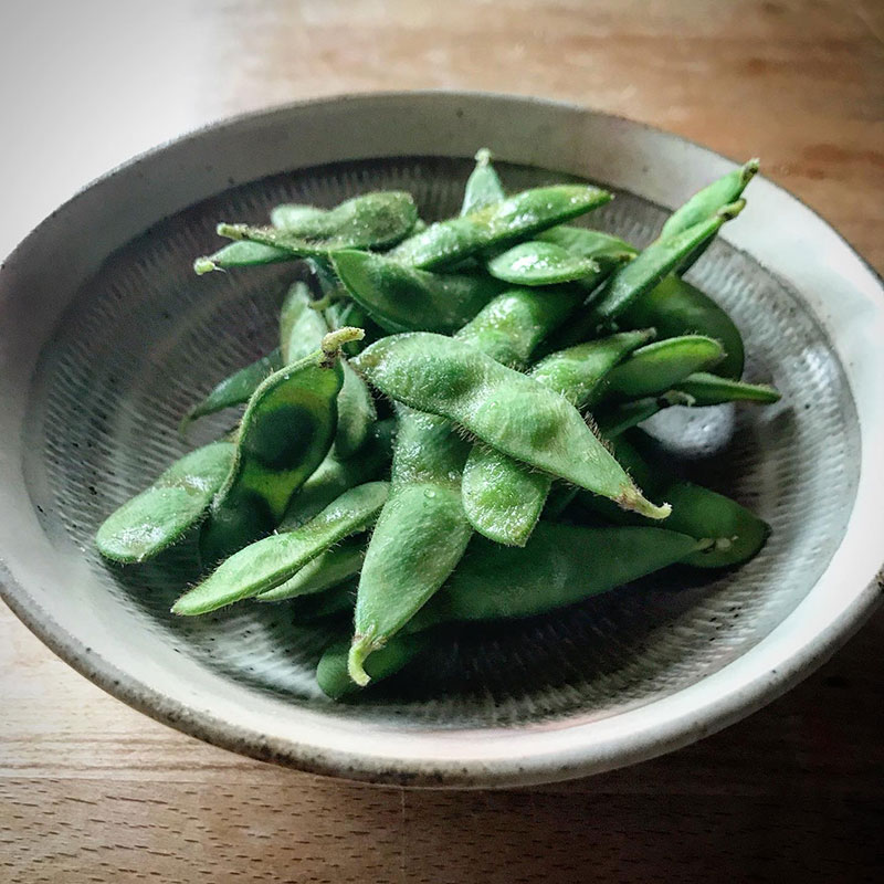 不耕起有機農法のみどりさんに分けてもらった、早生の大豊緑の枝豆、まだ早いけど試しに収穫してみる。塩でもんで即茹でる。