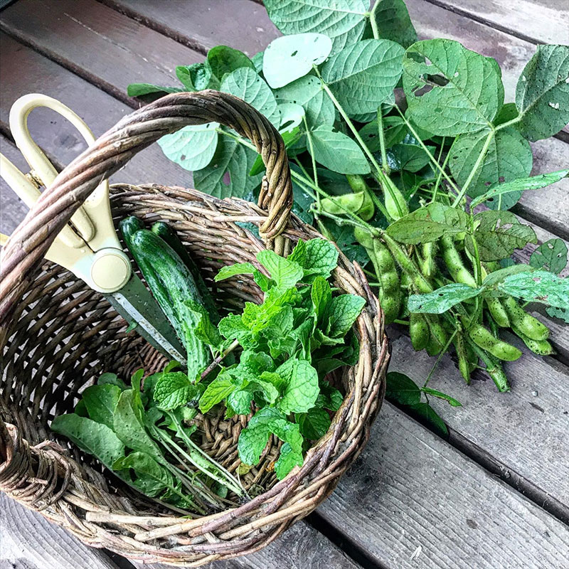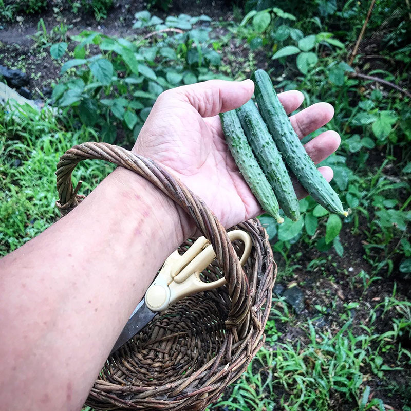 きゅうりは小さいうちにどんどん収穫する。柔らかくて美味しいし、そうしないとふたりでは食べるの追いつかなくなる。大量に追い越されたら自家製きゅうりのキューちゃん漬けるけど。