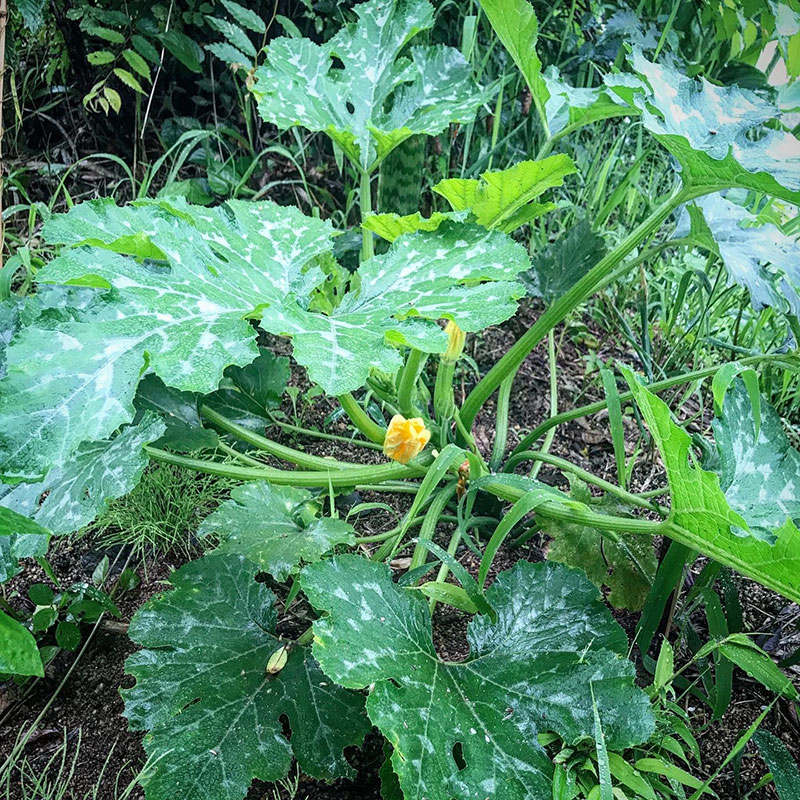 ズッキーニは葉も大きく広げて毎日花も咲いてるのに全然実がつかない。受粉させてやらないと駄目かな?スイカも。