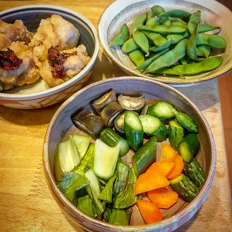 ぬか漬けはニンジンと畑のきゅうりと茄子。