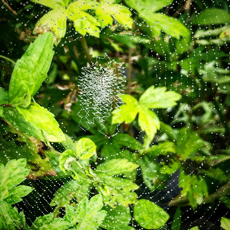 あんまり雨が続いて蝶も蜂もトンボも飛んでないから蜘蛛も大変だろう。
