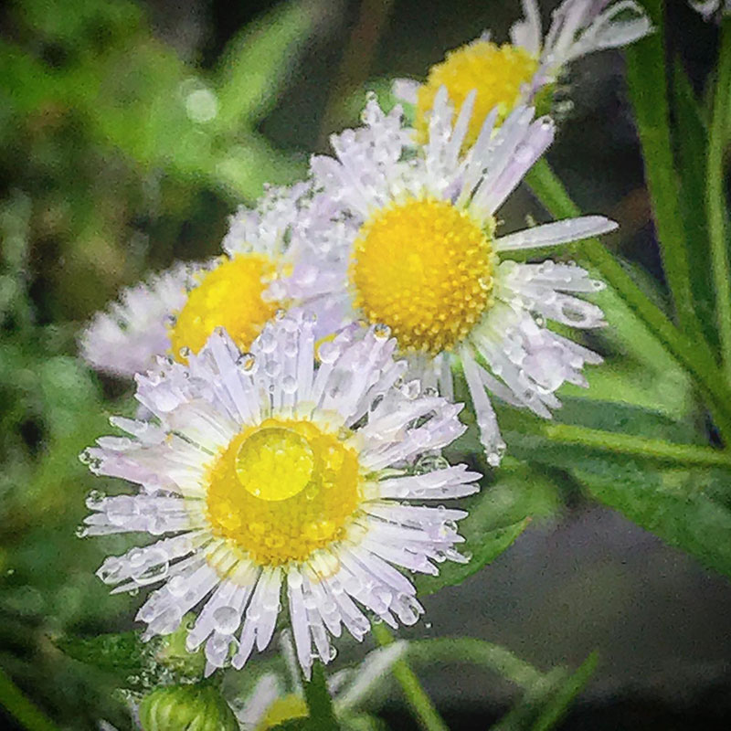 雨粒を乗せた花や