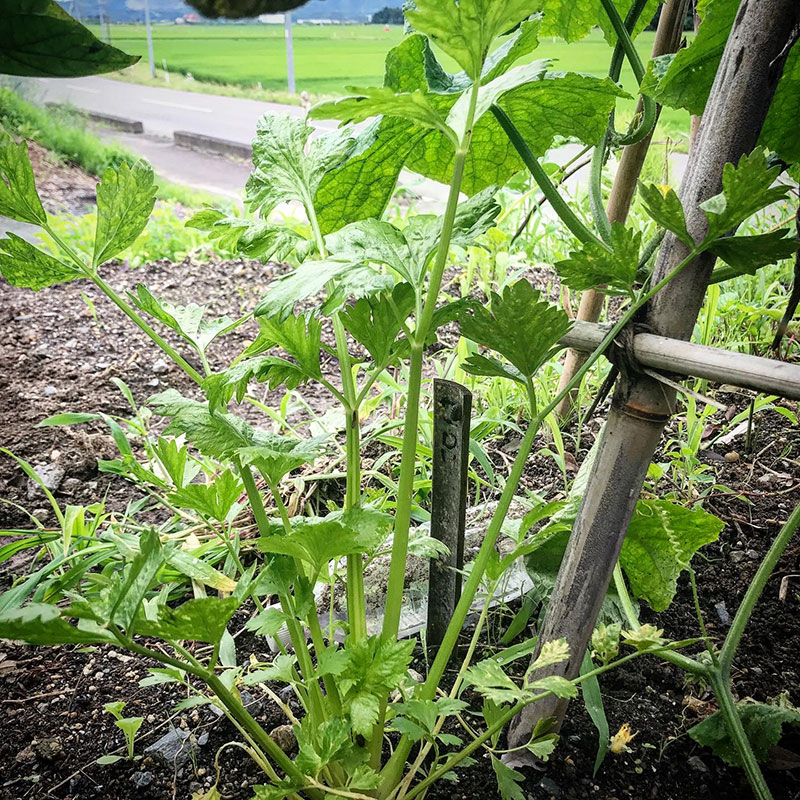 セロリが大きくなってきた。畑のトマトとセロリ使ってボロネーゼソース作るの楽しみ。