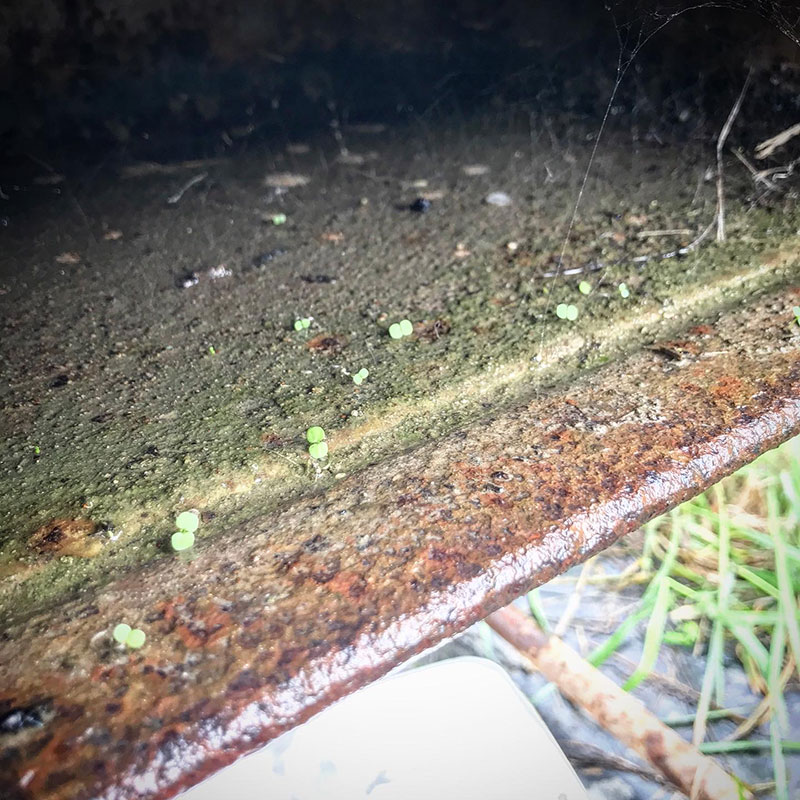 その金属の上に落ちた種が発芽してる。