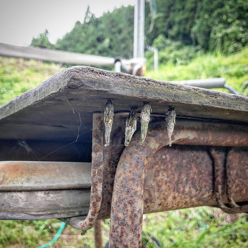 そして磨き台の下にはたくさんのミノムシが軒を連ねている。なんでわざわざここ・笑?