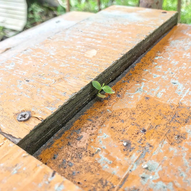 ベニヤ板の隙間からも。自然の生命力って。