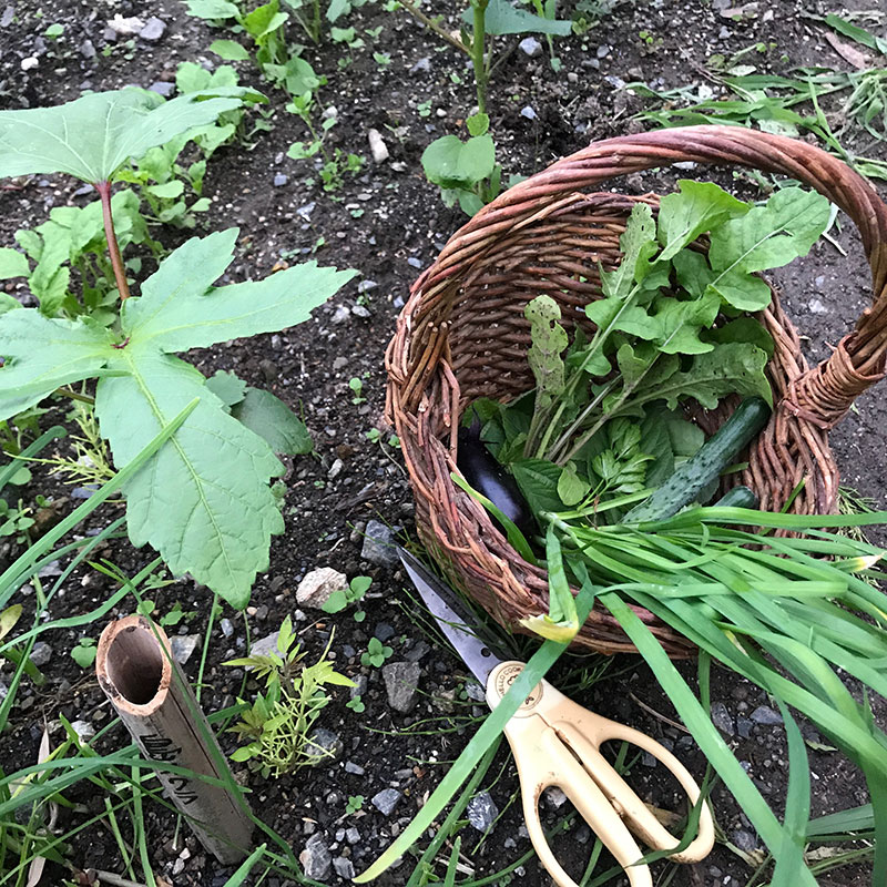 今朝の畑のつまみ食い。 #庭の猫の額畑