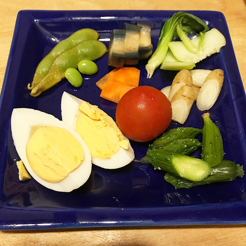 今日のぬか漬けは枝豆、茄子、きゅうり、青梗菜、ごぼう、ニンジン、ゆで卵。ミニトマトのぬか漬けは噛んだらなんかシュワってなった。3日目のゆで卵は前よりかなり硬くなってる。今日初めての枝豆うまい。ただ茹でただけなのにちょうどいい塩加減。幸せなぬか漬け生活。