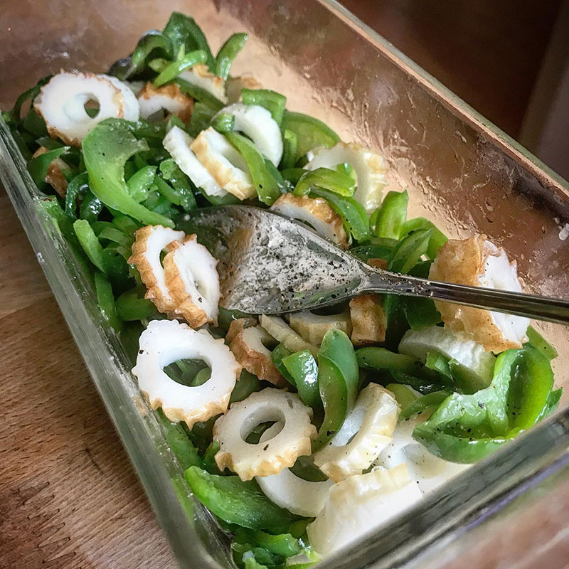 畑にピーマンがたくさんなってるのでレンチンで一品追加。ピーマン細切りしてだし塩、鶏がらスープの素、ごま油入れてレンジで2分半。ツナ缶があれば無限ピーマンにしようと思ったけど無かったので冷蔵庫にあったちくわで。