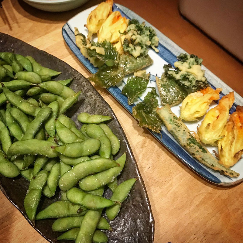 他に畑のパセリ、オクラ、大葉、ピーマンもフリットに。パセリもちもち。山形のだだちゃ豆。