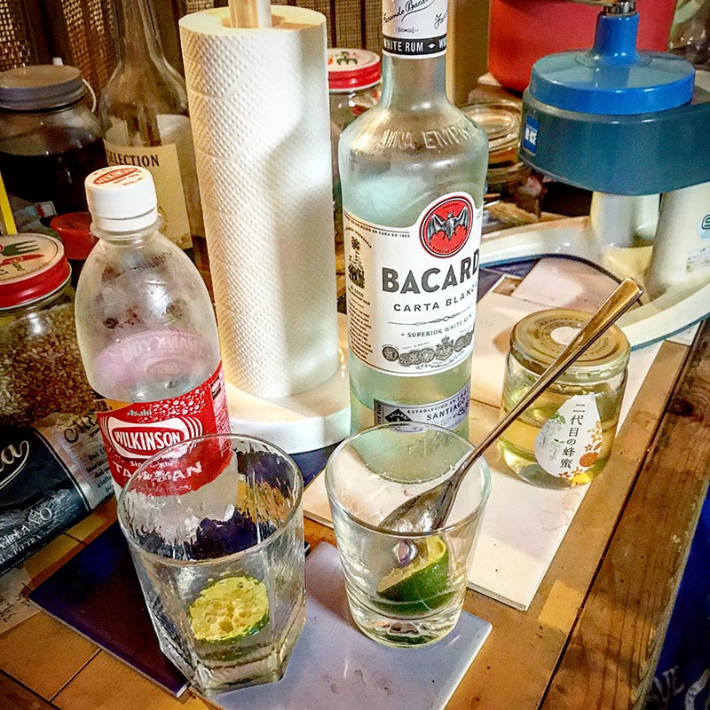 蜂蜜とバカルディラムと炭酸水のカクテルに。
