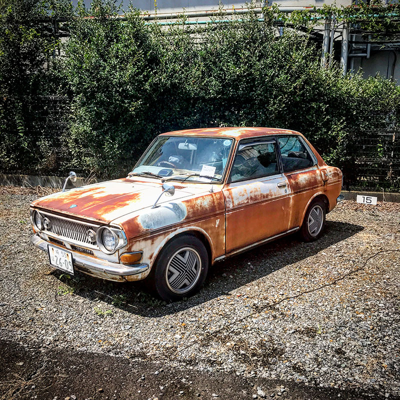 もう何年も経年変化を見続けてる車。年々渋さが増してる気がするw 全く動いた形跡は無いけど日に焼けたナンバープレートがついてる。