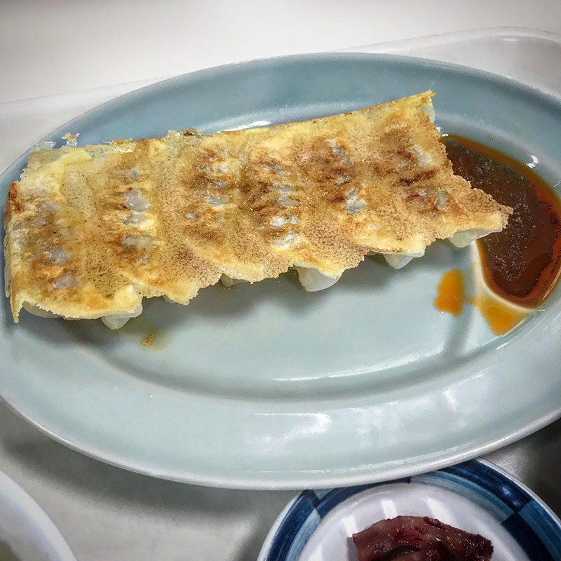 また「豚喜喜」の羽付き餃子のお昼。パリパリでうまい。梅味の搾菜も何気に旨い。