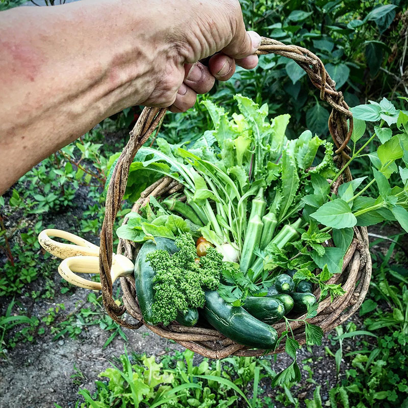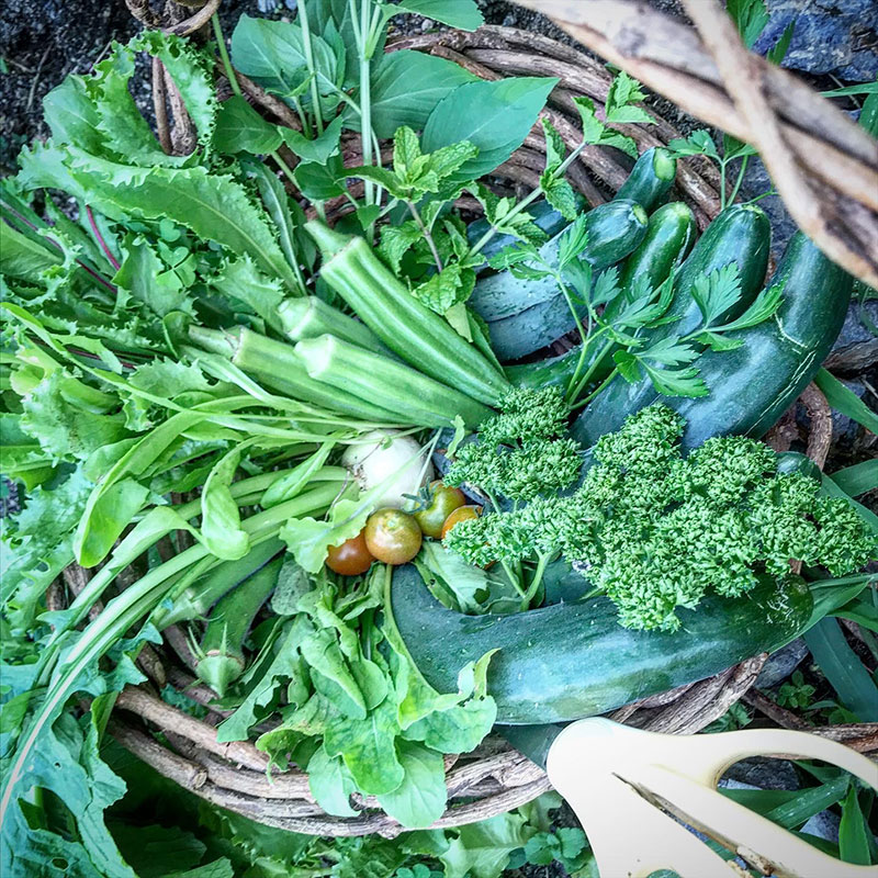 カゴいっぱいの収穫。