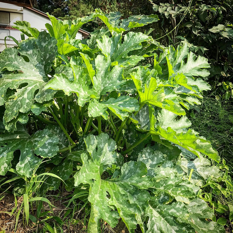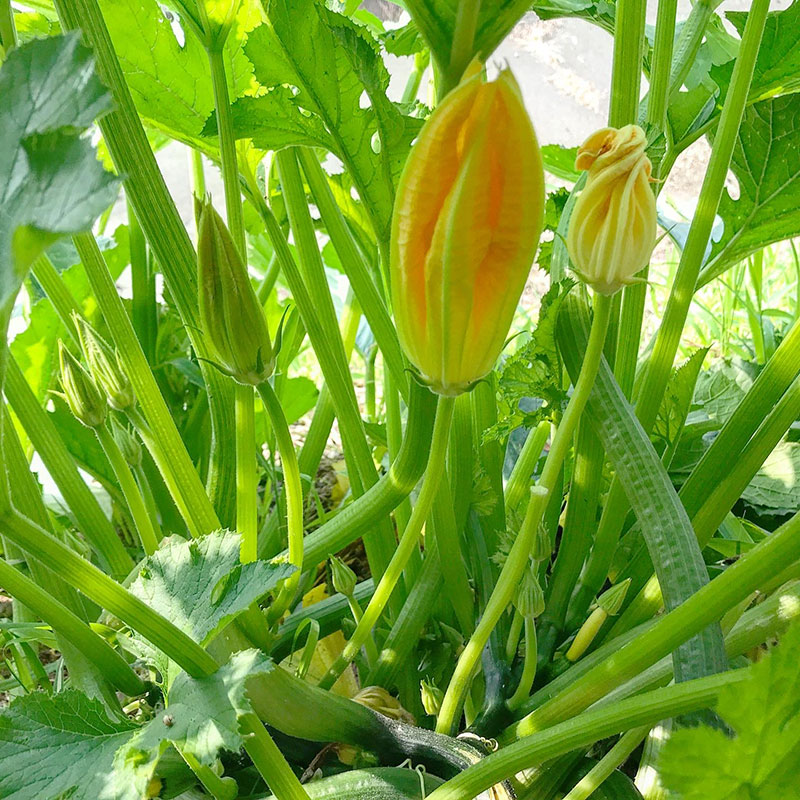 ズッキーニ、今朝も咲いたのは雄花だけ。