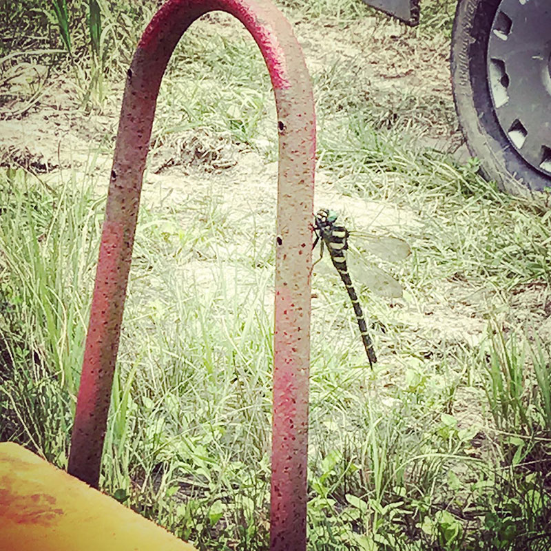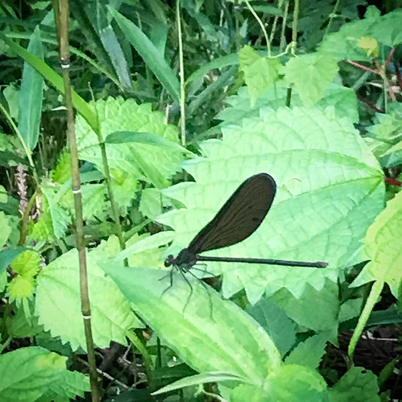 去年秋の台風の大水害で卵が流されてしまったのか毎年この時期に家の裏山にいっぱい舞ってるハグロトンボをたった1匹1週間しか見なかった。今日、仕事場でオスを1匹見た。仕事場でハグロトンボ見たのは初めて。