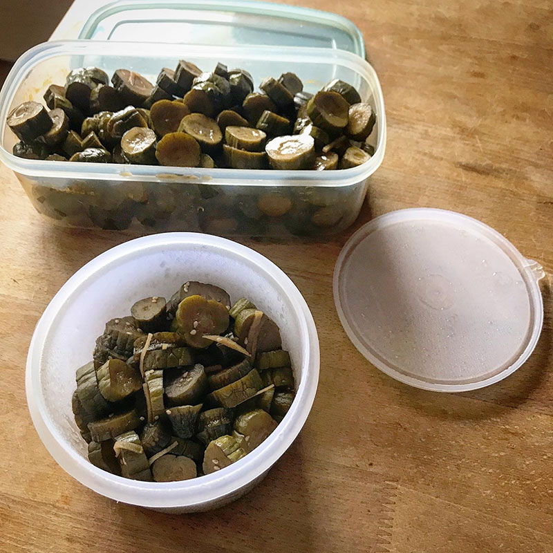 2回目の自家製きゅうりのキューちゃんの仕込み終了。ものすごい量になってしまった。取りに来れる人は容器を持って取りに来て欲しい・笑