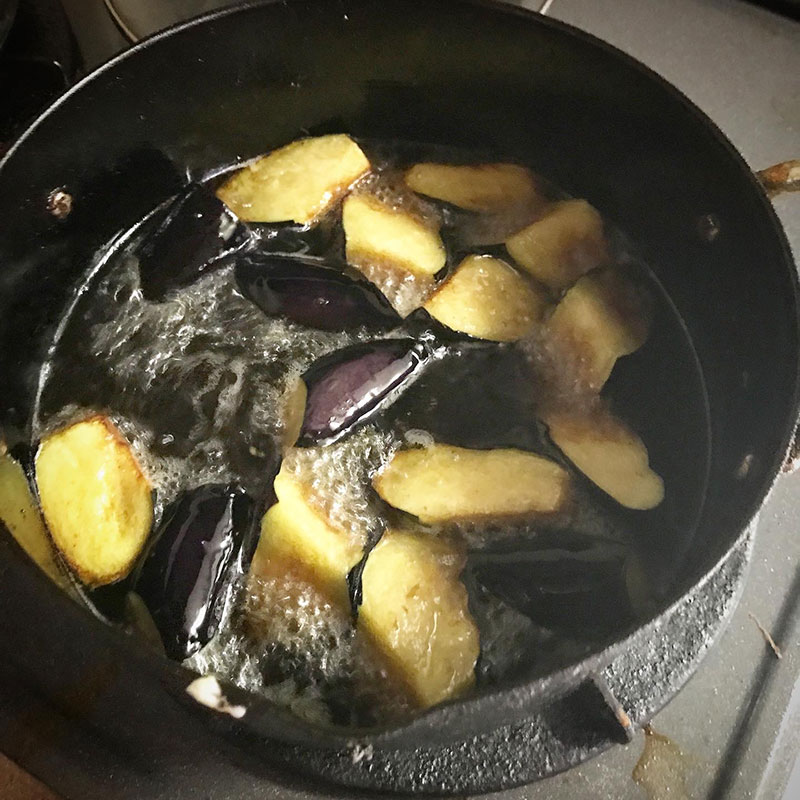 2本乱切りにして素揚げして揚げ浸しに。
