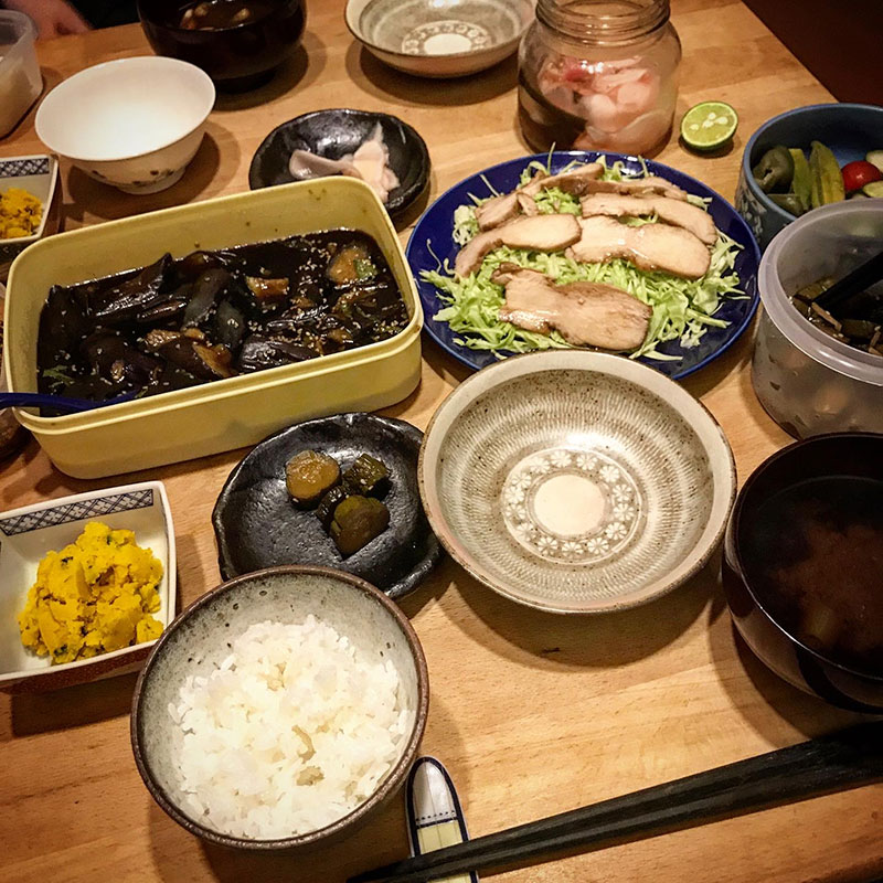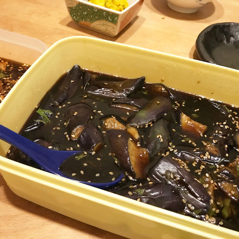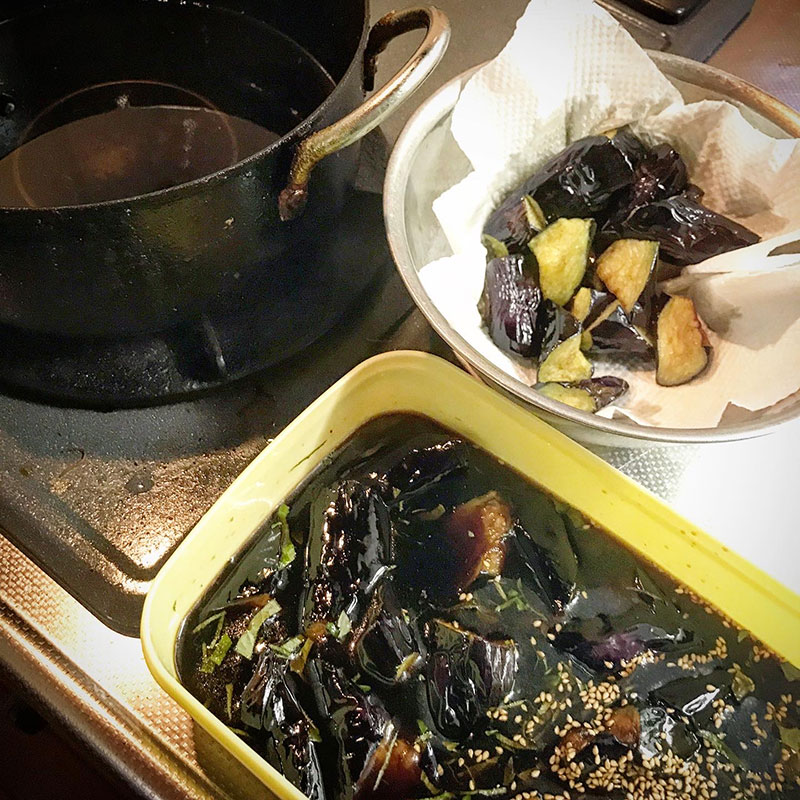 昼に茄子の揚げ浸し作っておいて良かった。